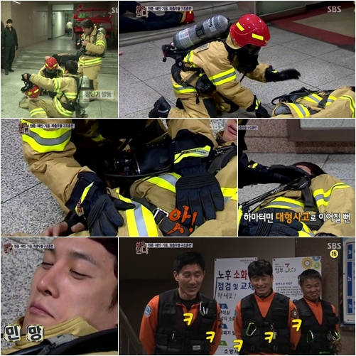 지난 7일 방송된 SBS '심장이 뛴다'에서는 화재 상황을 대비해 실물화재훈련을 받는 멤버들(전혜빈 박기웅 이원종)의 모습이 그려졌다.