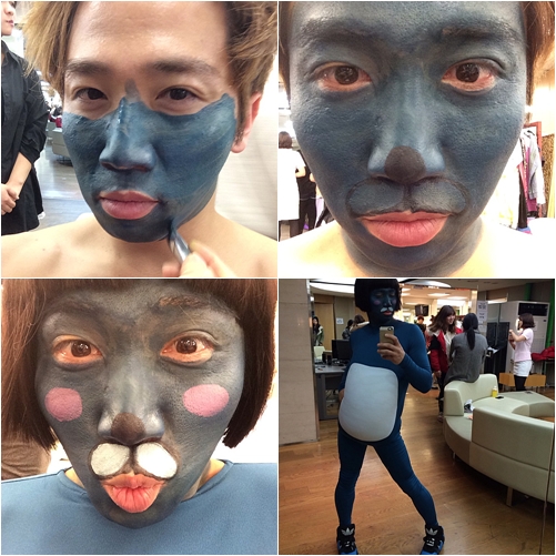 공개된 사진에는 유세윤이 인기 이모티콘 캐릭터 네오로 변신하는 과정을 깨알같이 담고 있다.