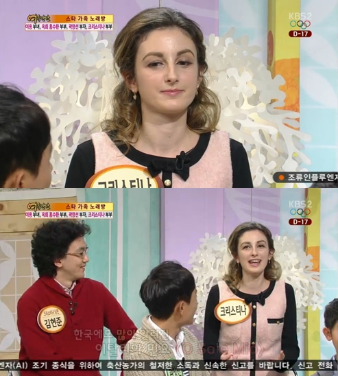 크리스티나의 남편 김현준씨가 아내의 노래 실력에 깜짝 놀라 결국 노래를 중단하는 사태가 벌어졌다.