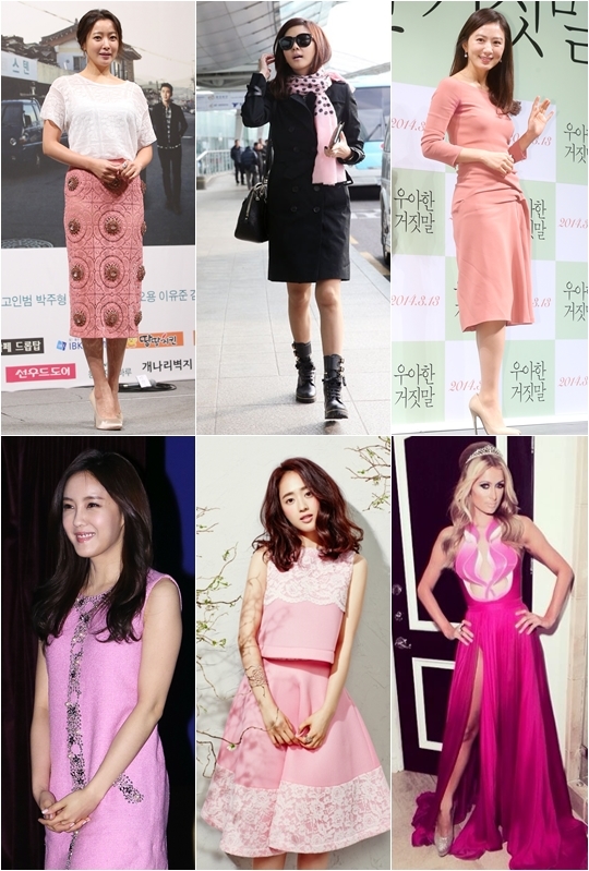 봄바람이 불기 전 분홍색 옷자락을 타고 봄이 먼저 찾아왔다. 저마다 핑크를 포인트 컬러로 내세운 스타들의 고운 패션이 시선을 붙들고 있다. 며칠 새 김희애 김남주 김희선 등 미시 스타는 물론 아이돌 스타들까지 고운 핑크색 의상을 연이어 선보이며 다가오는 봄을 먼저 알렸다.