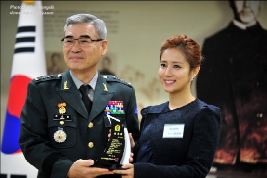 국방홍보원은 최근 블로그 '어울림'을 통해 1대 육군 홍보위원에 위촉된 최송현과 권오성 육군참모총장이 함께 찍은 사진을 공개했다.