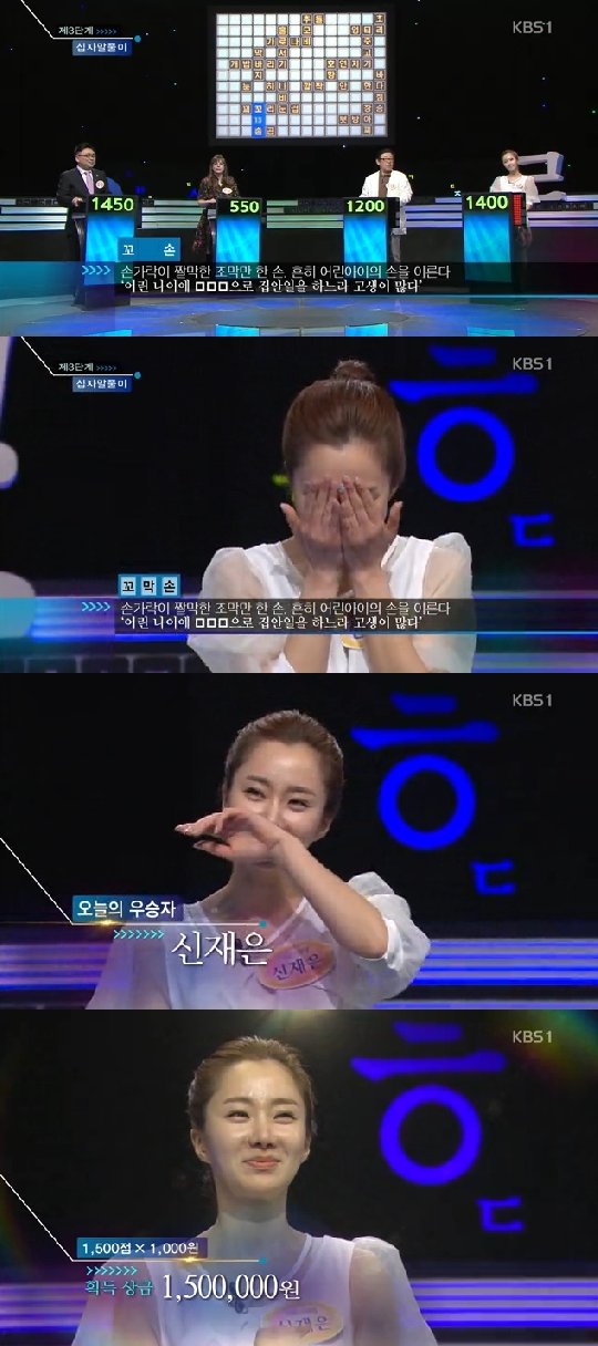 마지막 문제가 나오자마자 버튼을 누른 신재은은 정답을 맞추며 총 1500점을 기록, 최종우승으로 상금 150만 원을 거머쥐었다.