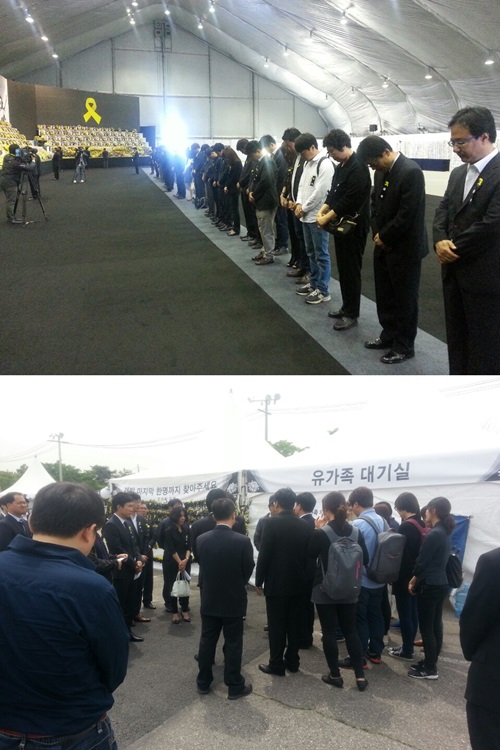 전국언론노조 KBS본부 조합원들이 20일 경기도 안산 정부합동분향소를 찾아 세월호 희생자들을 조문하고 유가족들을 만나 사죄했다. /사진제공=전국언론노조 KBS본부
