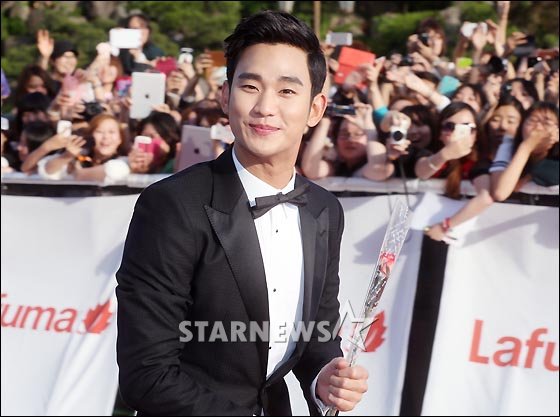 배우 김수현이 27일 오후 서울 동대문구 경희대학교 평화의전당에서 열린 '제50회 백상예술대상 시상식'에서 레드카펫을 밟고 있다.