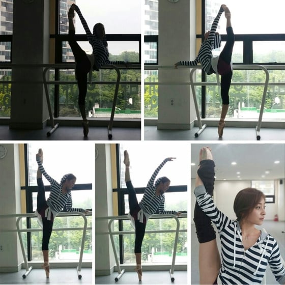 탤런트 왕지원이 발레 연습 사진을 공개했다.