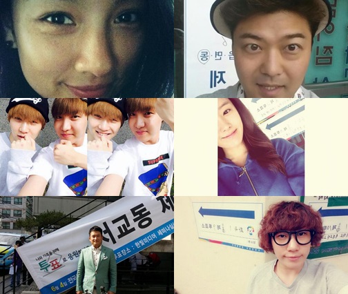제6회 전국동시지방선거(이하 지방선거)에 참여한 스타들이 이른 아침부터 저마다 투표한 사진을 SNS에 올리며 투표를 독려하고 있다.