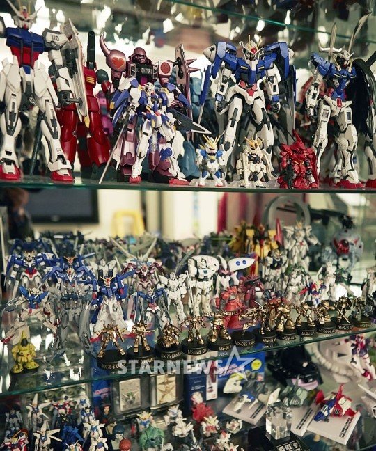 다짜고짜 물었다. 왜 건담을 좋아하냐고. 박해진 눈에 생기가 돌기 시작했다. 의자를 앞당기며 눈을 마주쳤다. 박해진은 "어릴 적부터 건담을 좋아했는데 살 수 있는 형편이 안됐다. 데뷔 이후 여유가 생기니깐 조금씩 모으기 시작한 게 어느덧 집을 가득 메운다"고 했다. 연기를 정말 잘한다고 칭찬을 해도 이 만큼 싱글벙글 할 수 있을까, 장난감을 처음 산 어린아이 같은 표정이었다. 여유. 마니아 박해진의 마음을 엿볼 수 있는 중요한 키워드다. 여유와 결핍은 동전의 양면이다.