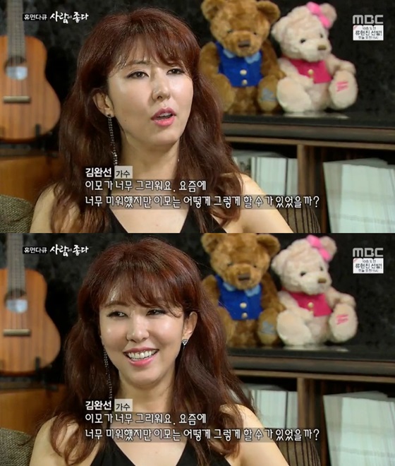 김완선은 28일 오전 방송된 MBC 휴먼다큐 '사람이 좋다'에서 "너무 미워했지만 이모가 그립다"고 입을 열었다.