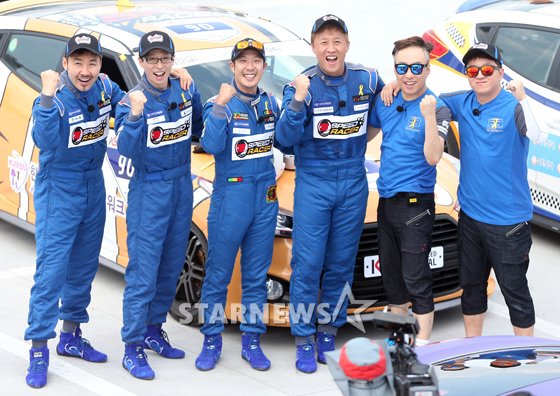 연예방송[★포토]'무한도전', '레이싱 기대하세요!'발행 : 2014.07.04 ・ 13:00인천=이기범 기자MBC '무한도전' 노홍철, 유재석, 하하, 정준하, 박명수, 정현돈(왼쪽부터)이 4일 오전 인천 송도 스트릿 서킷에서 열리는 '2014 코리아스피드페스티벌' 연습주행을 마친 뒤 기념촬영하고 있다.<저작권자 © 스타뉴스, 무단전재 및 재배포 금지>무한도전추천 기사이기범 기자기자홈좋아요 연예-방송의 인기 급상승 뉴스연예-방송의 최신 뉴스