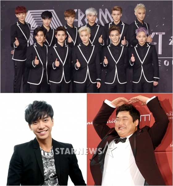 그룹 엑소, 개그맨 김준현, 가수 겸 배우 이승기(위부터 시계방향)/사진=스타뉴스