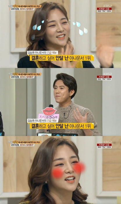 이에 김승휘 아나운서는 "그게 아니라 결혼하고 싶어 안달 난 아나운서다"라고 말해 웃음을 안겼다.