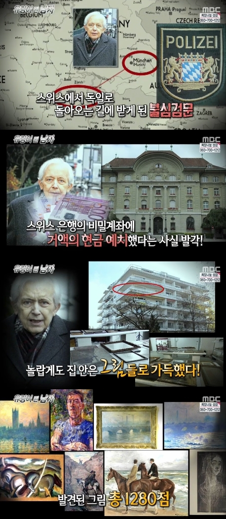 이들 그림은 2차 세계대전 당시 아돌프 히틀러가 약탈한 미술품의 일부. 이 남자의 아버지 힐데브란트는 약탈한 히틀러의 그림을 보관해왔다. 2차 세계대전이 끝난 후 힐데브란트는 자신이 보관하던 그림들을 비밀리에 뮌헨의 한 아파트로 빼돌렸다.