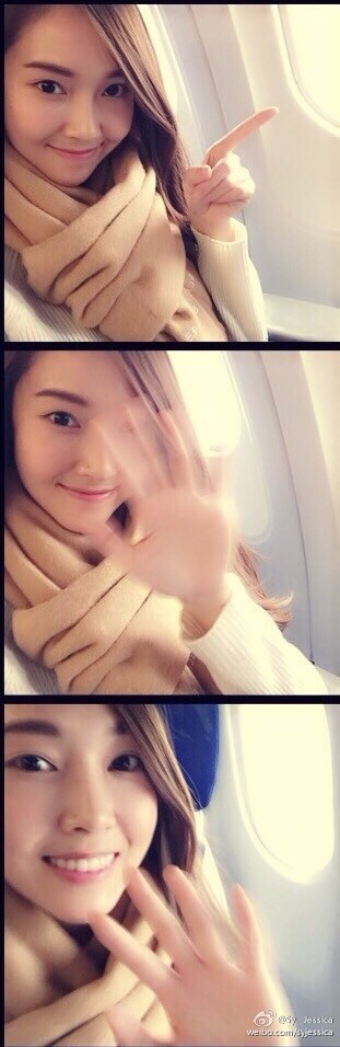 제시카는 19일 오후 3시 즈음 자신의 웨이보에 환한 모습이 담긴 4장의 사진을 올렸다.