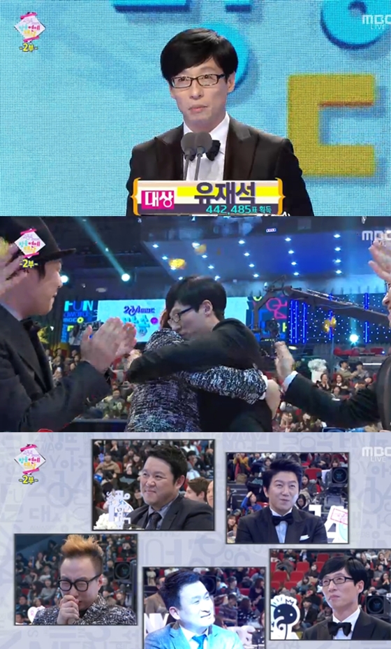 괜히 국민MC, 괜히 유느님이 아니었다. 사상 최초로 문자투표로 대상을 선정한 MBC방송연예대상 시상식에서 유재석이 대상을 품에 안았다.
