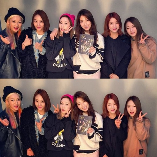 배우 박신혜가 걸그룹 에이코어(A.KOR 민주, 케미, 지영, 태희, 다야)를 응원하며 훈훈한 단체샷을 찍었다.