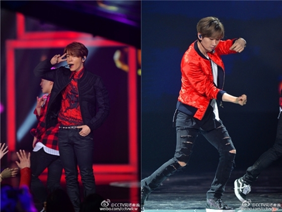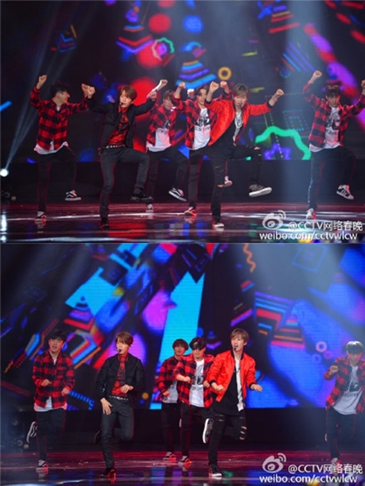 12일 중국 'CCTV 왕뤄춘완' 측은 공식 웨이보에 동해와 은혁의 무대 사진을 공개했다.