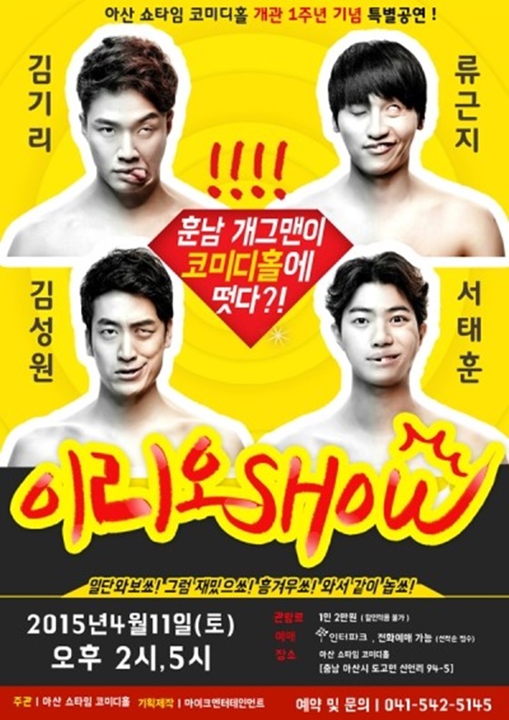 이들은 11일 오후 2시와 5시 2회에 걸쳐 충남 아산 쇼타임코미디홀(이하 코미디홀)에서 소극장 개그 쇼 '이리오쇼(이리오Show)'를 개최하고 팬들과 만난다.