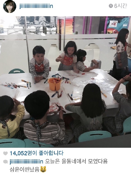 26일 정웅인의 아내 이지인 씨는 인스타그램을 통해 "오늘은 우리 동네에서 모였다. 삼윤이 신났음"이라는 글과 함께 정세윤, 정소윤, 정다윤과 윤후가 다른 아이들과 어울려 미술 수업을 하고 있는 사진을 게재했다.