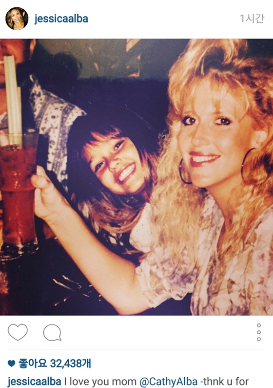 할리우드 배우 제시카 알바가 미국 어머니날((Mother's day)을 맞아 자신의 어머니와 찍은 어린 시절 사진을 공개했다.