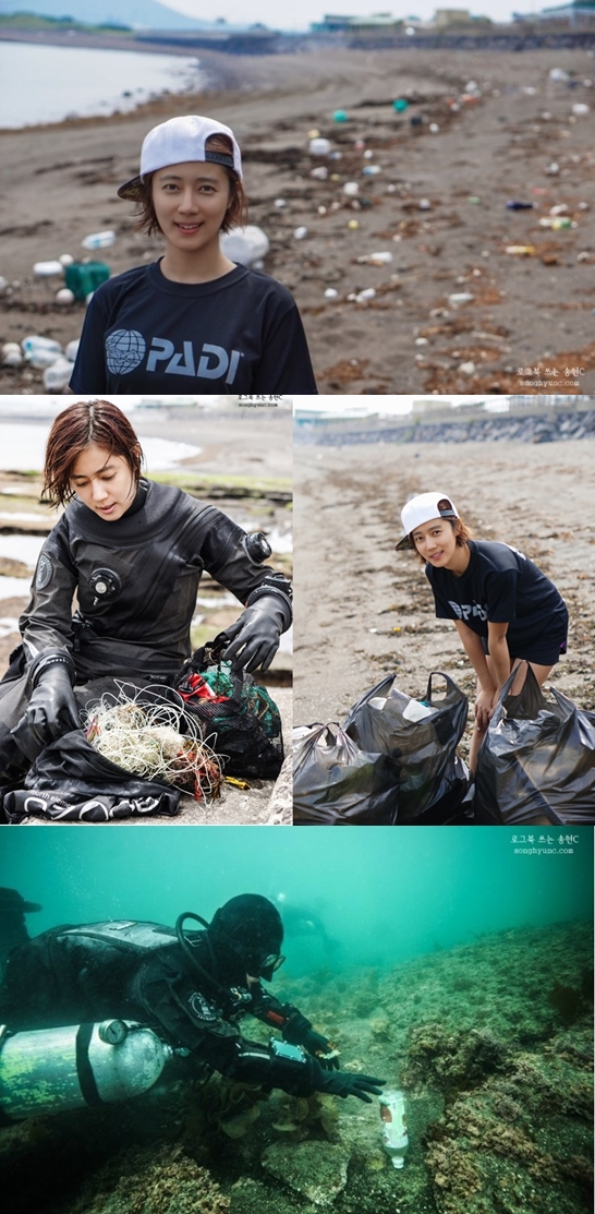 최송현은 5일 블로그를 통해 "다이빙을 시작한 후, 해양 환경과 수중생물 보호에 대한 이야기를 많이 접하게 되었고, 그러면서 저는 자연스럽게 바다 환경에 대해 많은 관심을 가지게 됐다"며 "그런데 지난 2월 제주 성산에서 있었던 PADI IE(강사시험)때 저는 바다에 입수해서 경악을 금치 못했다. 비치포인트에 어마어마하게 많은 쓰레기들이 바다 속에 깔려있었다"고 밝혔다.