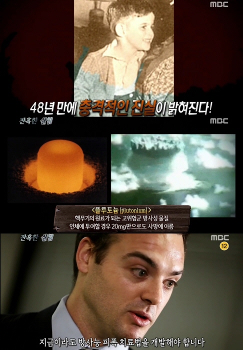 당시 원자 폭탄과 관련해 미국은 방사능으로 인한 2차 피해를 우려했고, 이를 위한 치료법을 위한 인체 실험이 이어졌고, 연고 없는 부랑자와 정신질환자들에게도 병원에서의 검사를 빌미로 인체 실험에 합류시켰다.