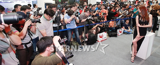 레이싱 모델 주다하가 9일 오전 서울 강남구 삼성동 코엑스에서 열린 '2015 서울오토살롱'에서 포즈를 취하고 있다.