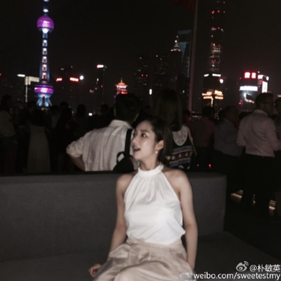 박민영은 2일 자신의 웨이보(SNS)에 "하루 종일 상하이에 있어요"라는 글과 사진을 게재했다.