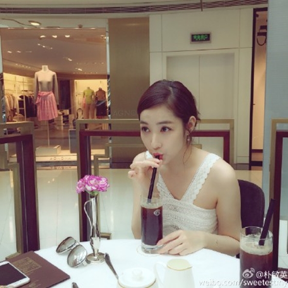 박민영은 2일 자신의 웨이보(SNS)에 "아이스 아메리카노와 함께하면 언제 어디서든 즐거워"라는 글과 함께 사진을 게재했다.