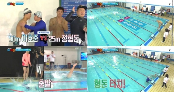이날 '우리동네 예체능'에서는 '우리동네 수영반'이 '해경특공대 준비생 팀'과 대결을 벌이는 모습이 그려졌다.