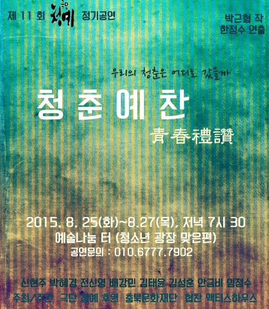 중원대 연극영화과 교수진과 재학생들은 25일부터 27일까지 충북 청주 예술나눔소극장 터에서 극단 '청예' 제11회 정기공연 '청춘예찬'(박근형 작)을 선보이고 있다.