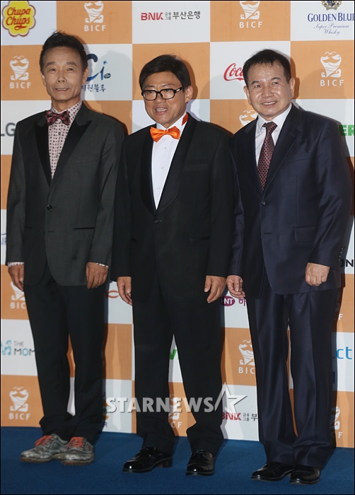 개그맨 김학래, 엄용수, 이용근이 28일 오후 부산광역시 해운대구 무동 영화의 전당에서 열린 2015 부산국제코미디페스티벌(BICF) 개막식에 참석해 포즈를 취하고 있다.