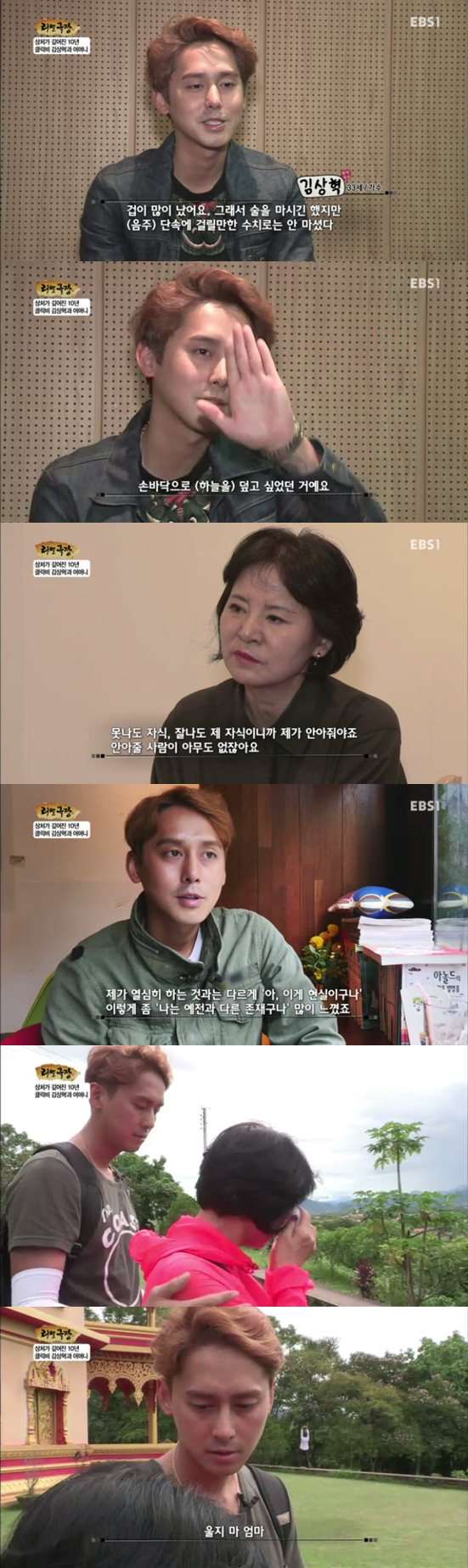 지난 13일 방송된 EBS '리얼극장'에서 김상혁은 어머니 배수연(64)씨와 7박 8일 라오스 화해 여행을 떠났다. 김상혁은 지난 2005년 음주운전 사건 당시 '술은 마셨지만 음주운전은 하지 않았다'는 발언에 대해 "겁이 많이 났다"며 심경을 밝혔다.