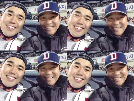 공개된 사진 속에서 임창정은 평소 절친한 사이이자 두산 팬으로 잘 알려진 개그맨 김지호와 함께 유니폼을 입고 환한 미소를 짓고 있어 진정한 두산의 팬임을 입증했다.