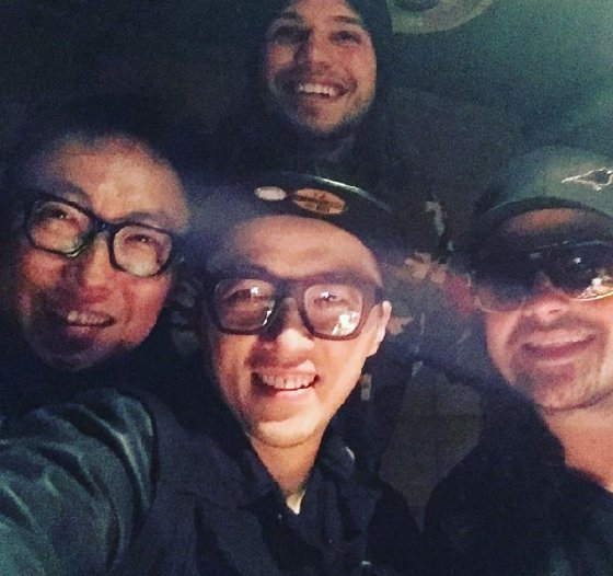 이날 공개된 사진 속 박명수는 세계적인 디제이로 알려진 덥스, 비제이와 함께 다정하게 어깨동무를 하고 잇몸을 드러낸 채 천진난만한 웃음을 짓고 있다.