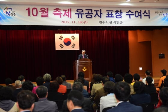 이날 표창 수여식에서는 코리아드라마페스티벌 외 진주남강축제, 개천예술제 등 진주를 대표하는 10월 축제 유공자와 유공단체들이 표창을 받았다.