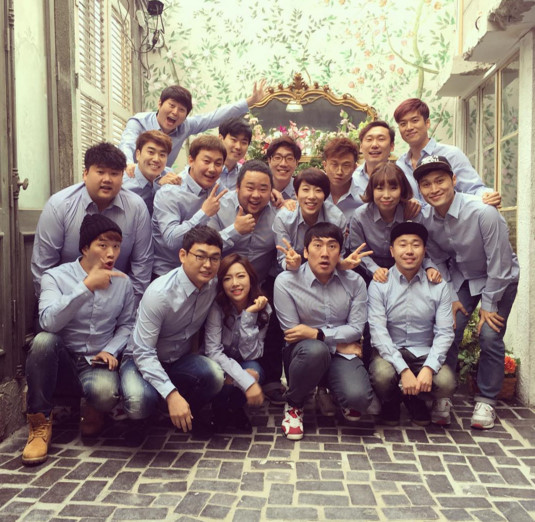 공개된 사진 속 KBS 희극인들은 박영진과 예비신부의 웨딩촬영을 위해 청바지에 하늘색 셔츠를 맞춰 입고 한 자리에 모였다. 맨 앞에 나란히 앉은 박영진과 신부는 행복한 미소를 짓고 있다.
