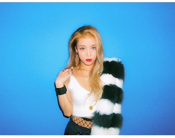 공개된 사진에서 유빈은 흰색 크롭티와 함께 스트라이프 무늬의 퍼를 두르고 있어 도도한 모습을 강조하고 있다.