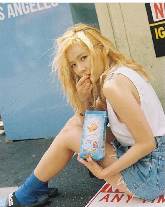 현아는 지난 2일 SNS에 금발로 변신한 화보를 공개했다. 화보 속 현아는 금발로 변신한 뒤 짧은 팬츠를 입고 있어, 반항기 있는 소녀의 느낌을 물씬 풍기고 있다.