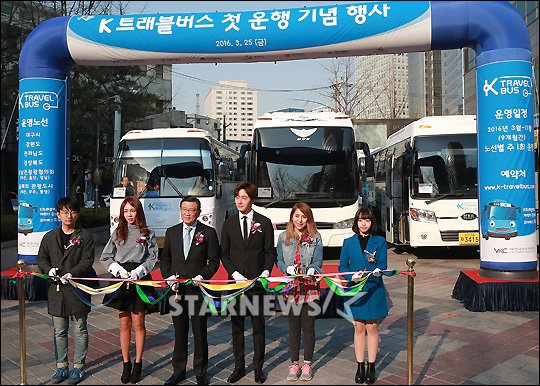 연예방송[★포토]'K트래블버스 운행 시작합니다'발행 : 2016.03.25 ・ 09:54김창현 기자걸그룹 타히티 미소, 한국방문위원회 박삼구 위원장, 배우 정일우가 25일 오전 서울 종로구 동화면세점 앞에서 진행된 버스자유여행상품 'K트래블버스' 첫 운행 기념행사에서 포즈를 취하고 있다.'K트래블버스'는 매주 1회 6개 권역으로 출발하며 미화 150~170달러로 교통과 숙박, 외국어 통역 가이드, 관광지 입장료 및 체험료 일체가 포함된다.<저작권자 © 스타뉴스, 무단전재 및 재배포 금지>K트래블버스추천 기사김창현 기자기자홈좋아요 연예-방송의 인기 급상승 뉴스연예-방송의 최신 뉴스