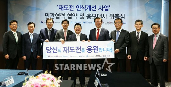 연예방송[★포토]'당신의 재도전을 응원합니다!'발행 : 2016.04.19 ・ 14:46김휘선 인턴기자개그맨 윤정수, 미래창조과학부 장관 최양희, 중소기업청장 주영섭, 6개 금융기관 대표가 19일 오후 서울 중구 전국은행연합회관 뱅커스클럽에서 진행된 '재도전 인식개선 사업 홍보대사 위촉식'에 참석해 포즈를 취하고 있다.<저작권자 © 스타뉴스, 무단전재 및 재배포 금지>윤정수 재도전 인식개선사업 홍보대사 위촉식추천 기사김휘선 기자기자홈좋아요 연예-방송의 인기 급상승 뉴스연예-방송의 최신 뉴스