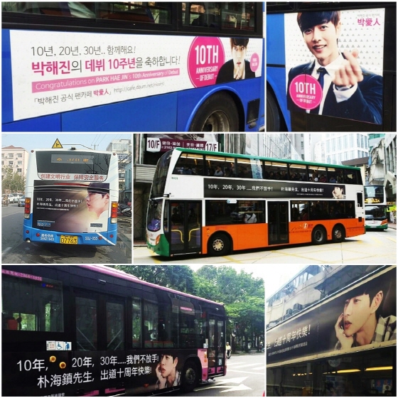 또한 중국 상해와 베이징 그리고 대만, 홍콩에서도 동시다발적으로 박해진의 데뷔 10주년을 축하하는 버스 광고가 대대적으로 이어졌다.