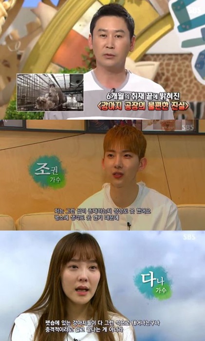 22일 방송된 'TV 동물농장'에서는 앞서 지난 15일 방송됐던 '강아지 공장' 편에 대한 후속 이야기가 전해지며 시선을 모았다. 이날 방송에서 MC 신동엽은 강아지 공장 편 녹화 당시를 떠올리며 "16년 동안 방송을 하면서 이렇게 서 있기 조차 힘들었던 적은 없었다"고 말했다.