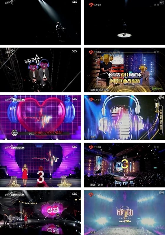 16일 제작사 코엔미디어에 따르면 중국 웨이보에는 '표절 당한 오빠가 열받았다'는 주제로 토론이 진행되고 있다. 이 게시물에는 SBS 파일럿 예능프로그램 '심폐소생송'과 장수위성TV '단오 명곡을 건지다' 방송 화면을 비교한 동영상 게시물이 첨부됐다.