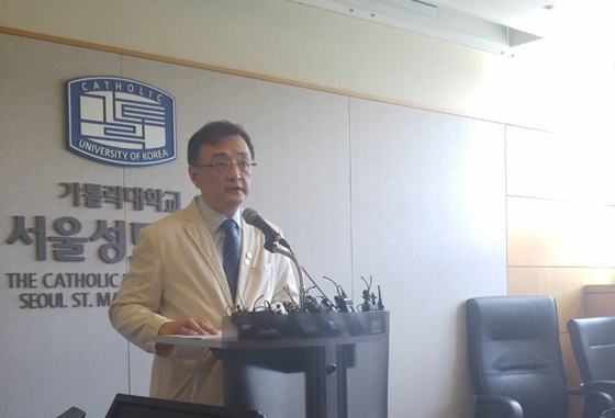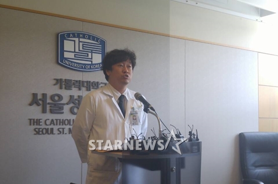 이날 브리핑에는 서울성모병원 장기이식센터장 양철우 교수와 직접 심폐소생술을 실시했던 주치의인 응급의학과 임지용 교수가 참석했다.