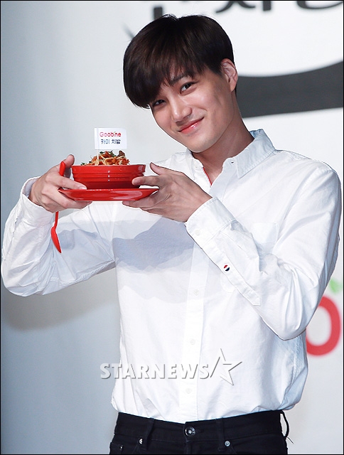 그룹 엑소 카이가 29일 오후 서울 강남구 청담동 일지아트홀에서 진행된 '굽네 볼케이노와 함께하는 치밥 쿠킹 팬사인회'에 참석해 포즈를 취하고 있다.