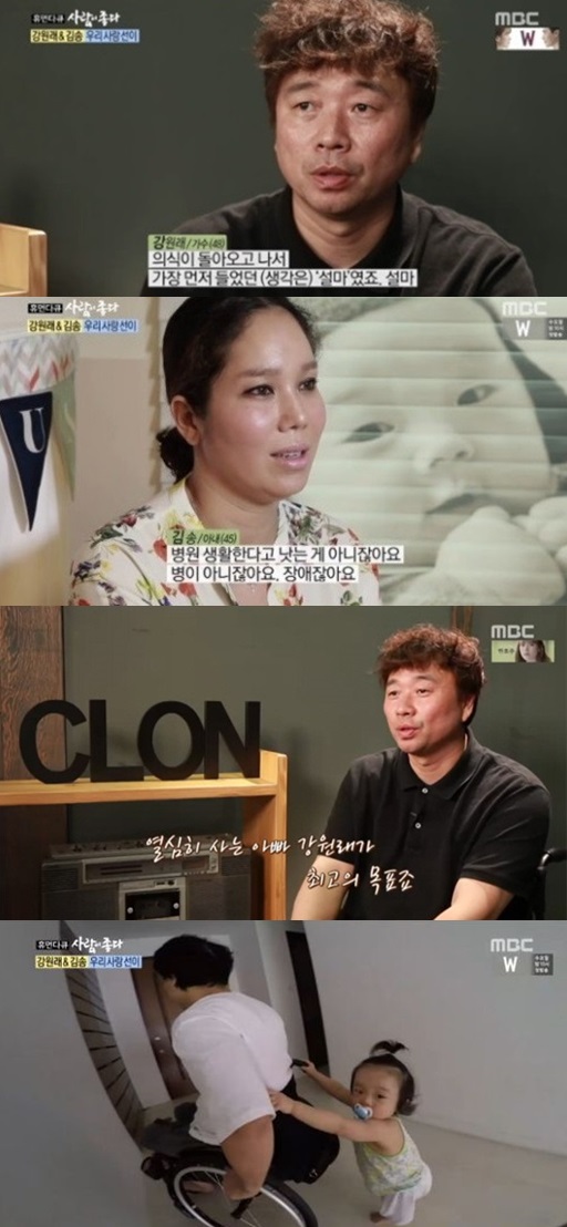 강원래는 17일 오전 방송된 MBC '휴먼다큐 사람이 좋다'를 통해 아내 김송, 그리고 아들 강선이와 함께 보내는 일상을 공개했다.