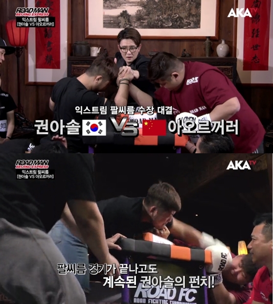 현지 언론은 중국 선수 아오르꺼러와 한국 권아솔 선수의 익스트림 팔씨름 영상과 인터뷰 영상이 중국 SNS에 빠르게 퍼지며 논란을 낳고 있다고 덧붙였다. 익스트림 팔씨름은 기존 팔씨름과 동일하지만 나머지 한 손에 글러브를 착용해 상대를 가격할 수 있다.