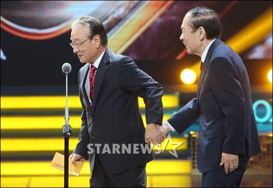 연예방송[★포토]이순재-오승룡 '우리는 친구'발행 : 2016.09.02 ・ 17:51이동훈 기자배우 이순재가 2일 오후 서울 여의도 KBS홀에서 열린 제43회 한국방송대상 시상식에서 공로상을 수상한 성우 오승룡의 손을 잡고 무대로 이동하고 있다.<저작권자 © 스타뉴스, 무단전재 및 재배포 금지>방송대상추천 기사이동훈 기자기자홈좋아요 연예-방송의 인기 급상승 뉴스연예-방송의 최신 뉴스