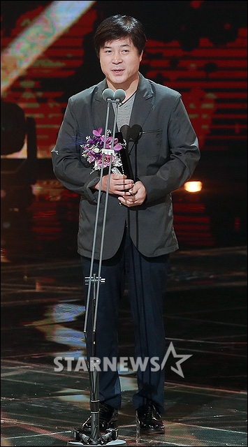 '태양의 후예' 배경수 PD가 8일 오후 서울 영등포구 여의도동 KBS홀에서 진행된 '서울드라마어워즈 2016'에서 한류드라마 작품상 최우수상을 수상한 뒤 소감을 말하고 있다.