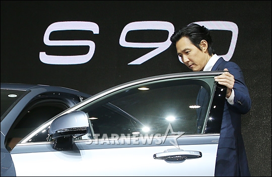 배우 이정재가 26일 오전 서울 서초구 반포동 세빛섬에서 열린 볼보자동차 플래그십 세단 '더 뉴 S90' 출시 행사에서 차를 둘러보고 있다.